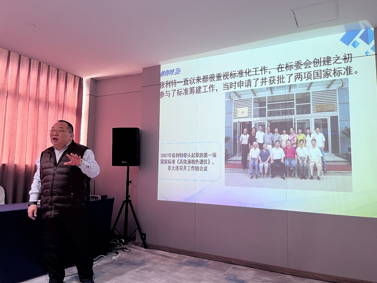 會議開始,由起草單位蘇州依利特科技集團有限公司董事長李彤博士發表了題為《依利特液相色譜與標準化發展之路》的開場報告。李彤博士講述了公司30年來在液相色譜領域的深耕歷程,隨后詳細介紹了公司以“系列全、產線全、覆蓋全”為特點的產品及服務體系,并回顧了依利特與分析儀器標委會近20年的深厚合作情誼。