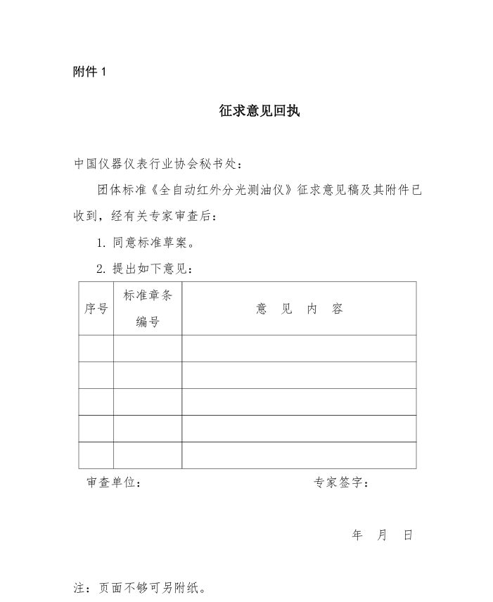 1. 征求意見回執——全自動紅外分光測油儀