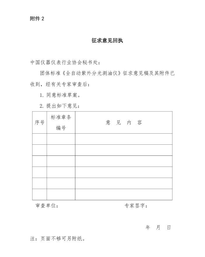 2. 征求意見回執—— 全自動紫外分光測油儀