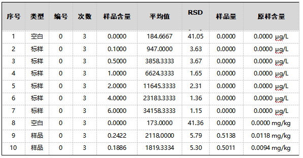 稱取0.5g試樣,精確至0.0001g,置于50mL燒杯中,加入適量水溶解,完全轉(zhuǎn)移至50mL容量瓶中,加入5mL硫脲-抗壞血酸混合溶液,加入5mL鹽酸溶液,用水稀釋至刻度,搖勻,室溫放置30min,同時(shí)制備空白溶液,待上機(jī)測(cè)試。