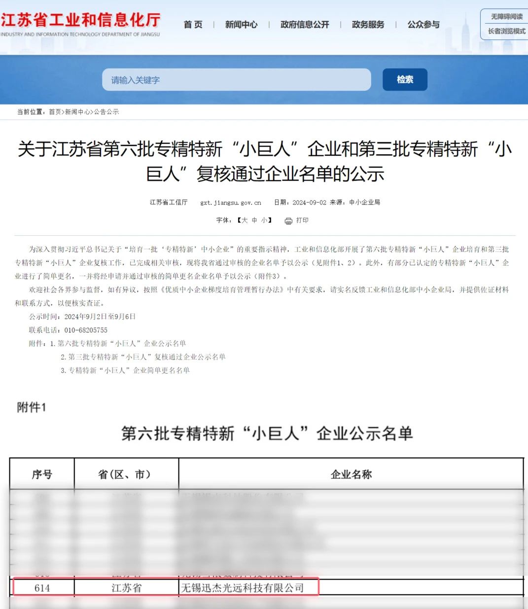 江蘇省工信廳近日公布了第六批專精特新“小巨人”企業(yè)名單,無錫迅杰光遠(yuǎn)科技有限公司憑借在近紅外光譜分析技術(shù)領(lǐng)域的卓越貢獻(xiàn)和持續(xù)創(chuàng)新,獲評“國家專精特新小巨人”。這一殊榮不僅是對迅杰光遠(yuǎn)過去成績的肯定,更是對公司未來發(fā)展?jié)摿Φ恼J(rèn)可。