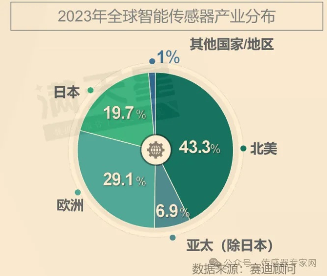 據(jù)工信部下屬產(chǎn)業(yè)研究機(jī)構(gòu)賽迪顧問數(shù)據(jù)顯示,以美國為主導(dǎo)的北美地區(qū)占據(jù)全球智能傳感器產(chǎn)業(yè)產(chǎn)能的43.3%,是占比最高的地區(qū),其次歐洲占比29.1%,日本占比19.7%,亞太地區(qū)(除日本)占比6.9%,其他國家/地區(qū)占比1%。在產(chǎn)能方面,歐美地區(qū)在智能傳感器領(lǐng)域的產(chǎn)能占據(jù)全球主要地位。(詳細(xì)數(shù)據(jù)參看《3644.7億元,中國是全球傳感器“小”國!發(fā)展刻不容緩!》)
