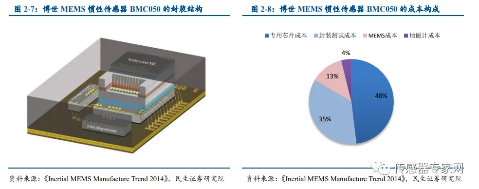 ▲博世MEMS慣性傳感器BMC050成本構(gòu)成