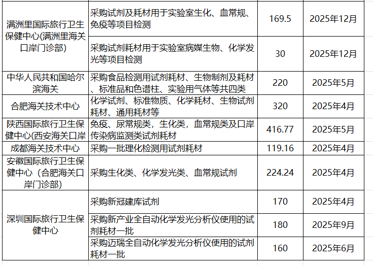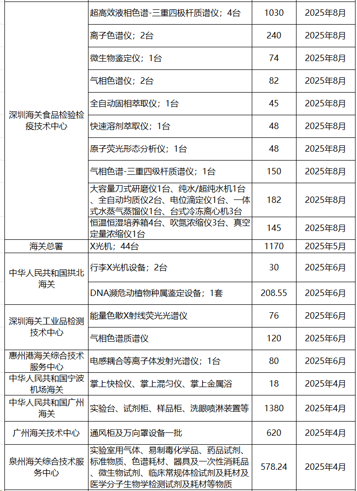 海關(guān)系統(tǒng)儀器設(shè)備及試劑耗材采購(gòu)意向匯總