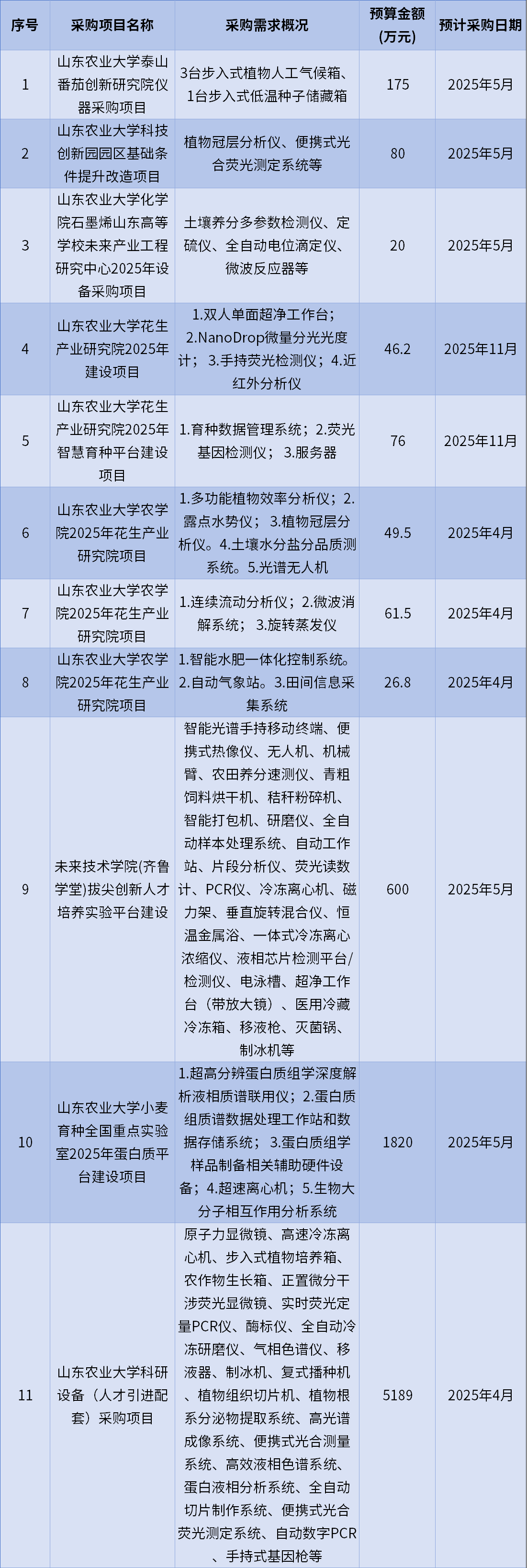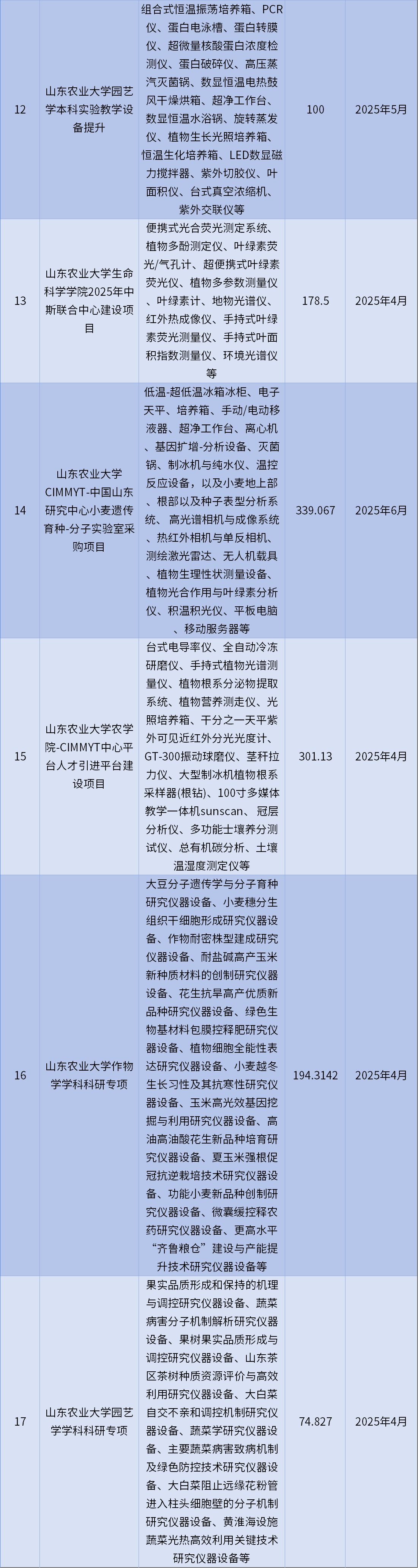 預算9330萬元,山東農業大學儀器采購意向匯總