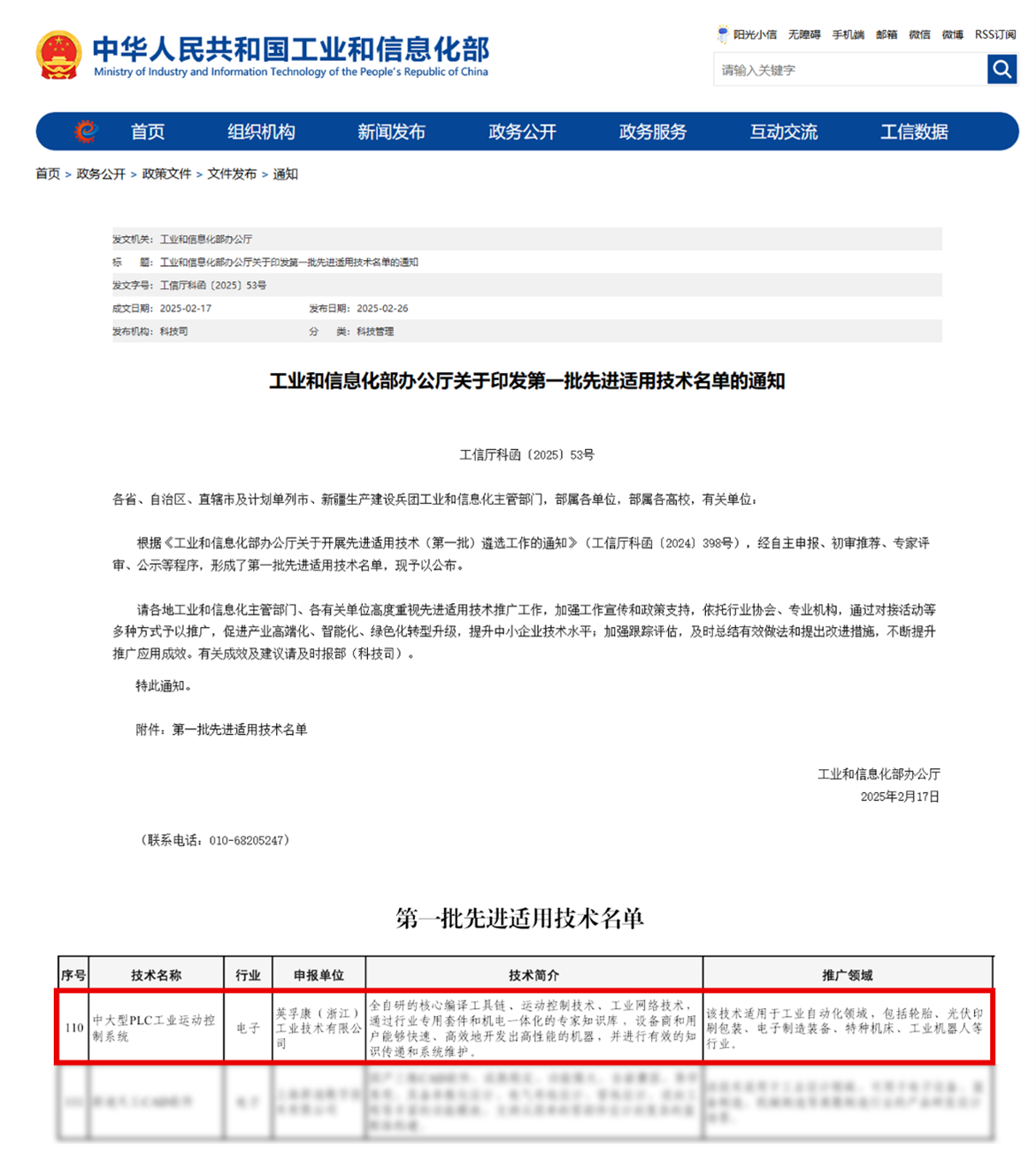 值得驕傲的是,在2025年2月,英孚康自主研發的“大中型PLC工業運動控制系統”憑借技術領先性、產業適配性與生態創新性入選了工信部第一批先進適用技術名單。作為國家層面的權威評選,工信部對參評技術從技術的創新性、成熟度、應用前景到市場競爭力、經濟效益等多個維度進行穿透式評估,能夠入選是對企業技術實力和創新能力的最高褒獎,其權威性與含金量不言而喻,這一殊榮無疑是對英孚康的技術實力和發展前景的高度認可。