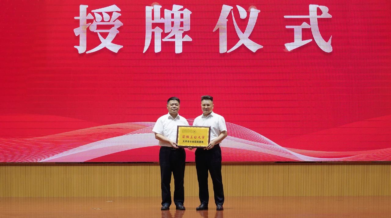 會(huì)議期間舉行了“大學(xué)生社會(huì)實(shí)踐基地”授牌儀式,安徽工業(yè)大學(xué)黨委書記陸林與天康集團(tuán)黨委副書記、總經(jīng)理毛文章代表雙方授接牌匾。