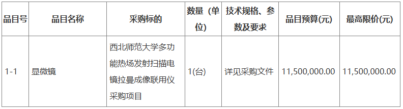 項目名稱:多功能熱場發(fā)射掃描電鏡拉曼成像聯(lián)用儀采購項目