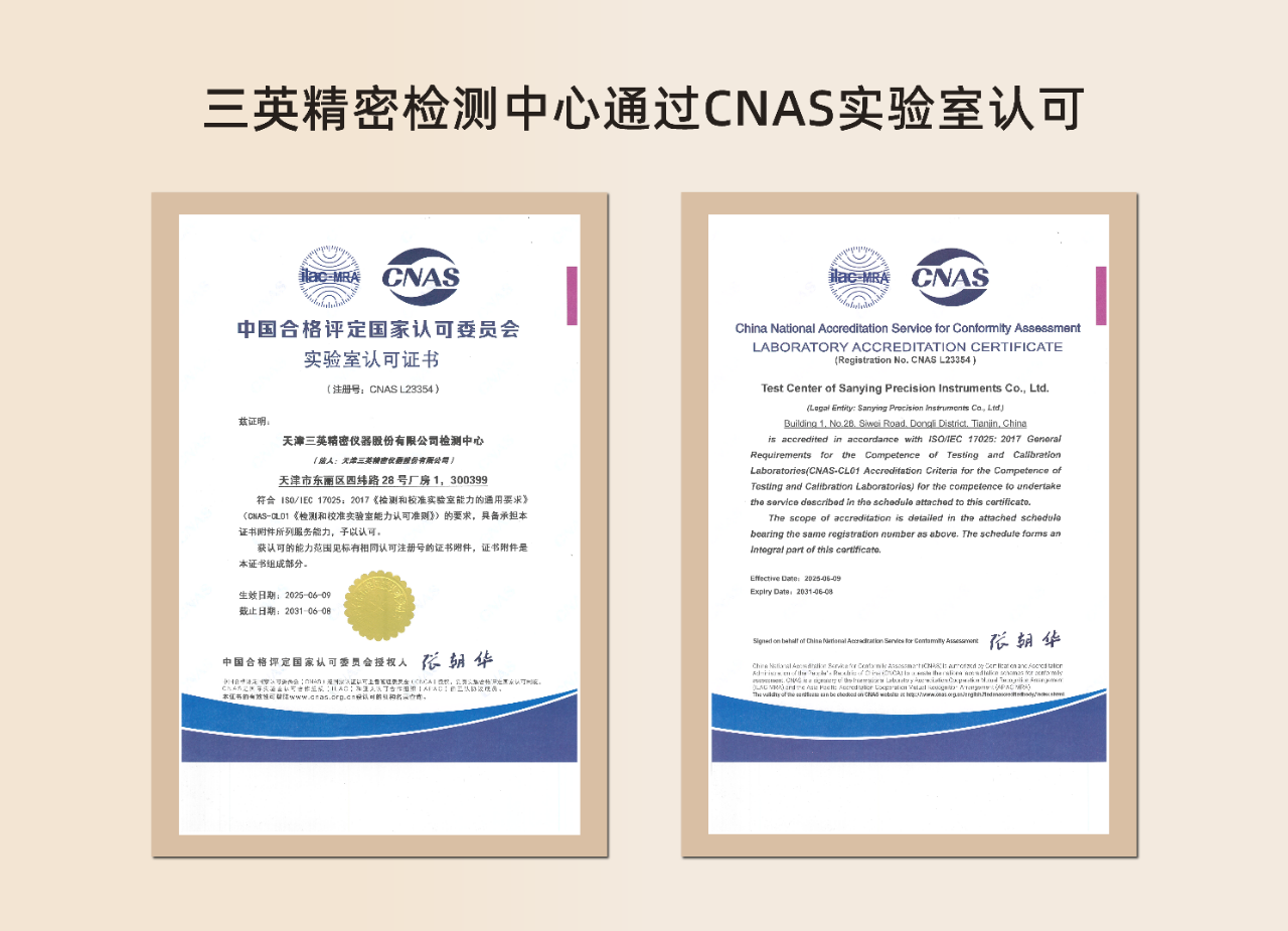 近日,三英精密檢測技術(shù)再獲國家級認(rèn)可!經(jīng)過嚴(yán)格評審,天津三英精密儀器股份有限公司檢測中心(以下簡稱三英精密檢測中心)成功通過中國合格評定國家認(rèn)可委員會(CNAS)認(rèn)證,正式獲得CNAS實(shí)驗(yàn)室認(rèn)可證書(注冊號:CNAS L23354)。這標(biāo)志著三英精密的檢測能力、管理水平和技術(shù)實(shí)力達(dá)到國際標(biāo)準(zhǔn),在無損檢測領(lǐng)域再添一枚“國字號”金字招牌!