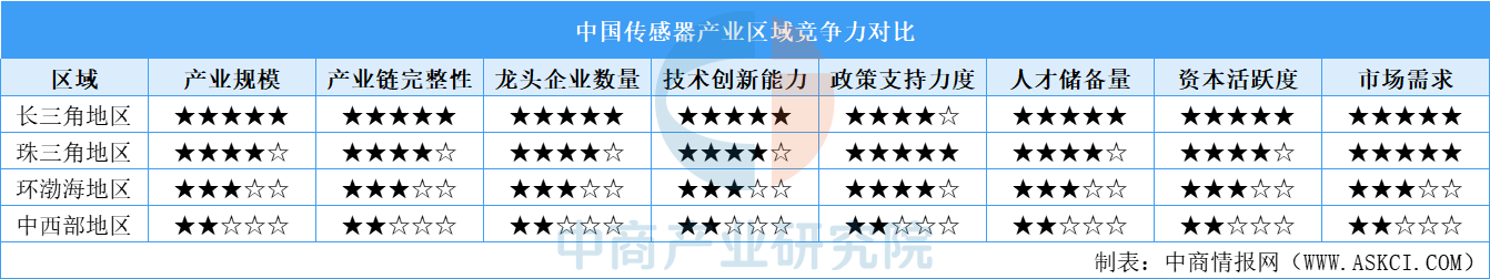 中國傳感器區域競爭力全景透析:長三角領跑,中西部特