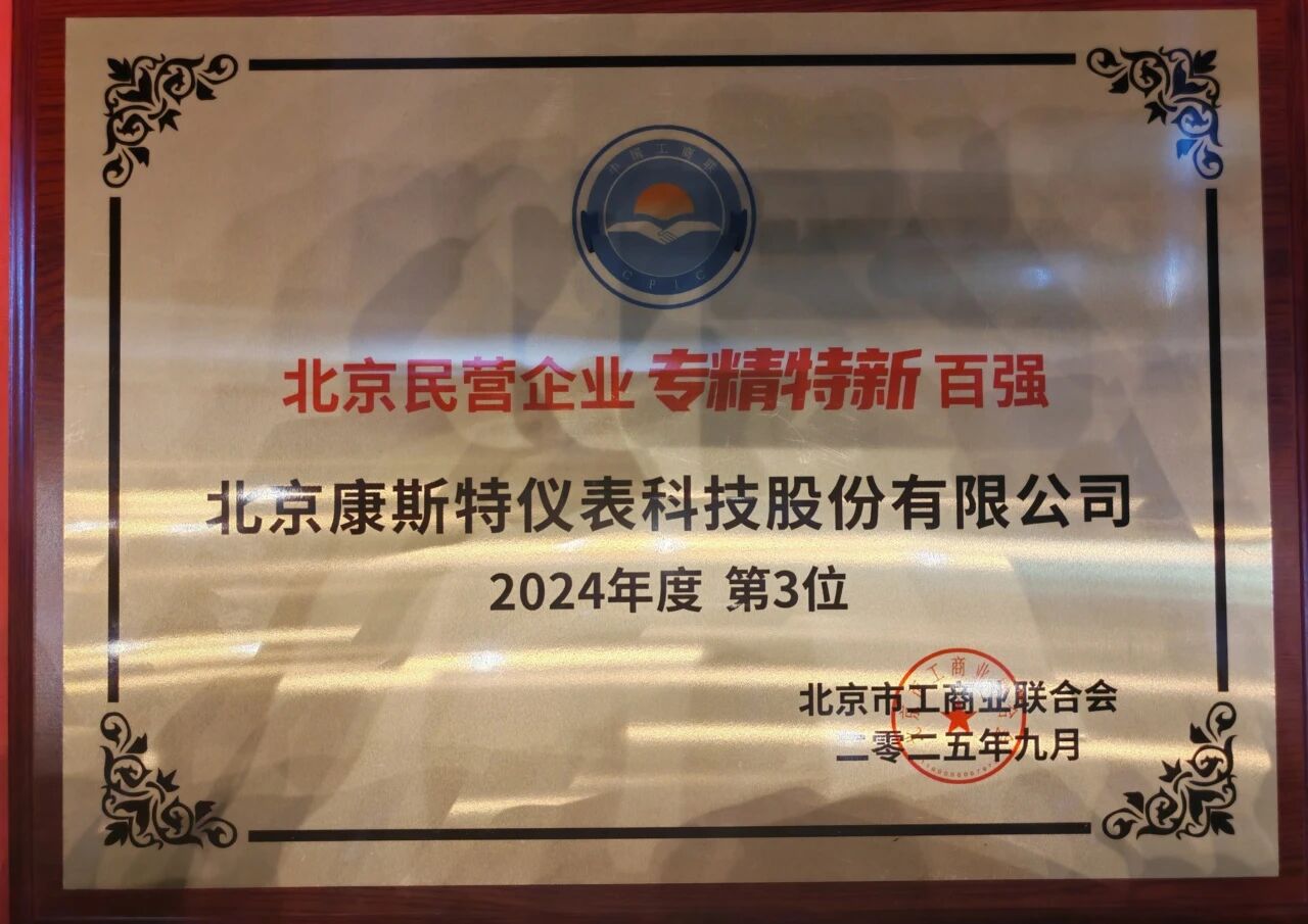 近日,2025 北京民營企業專精特新 100 強” 榜單正式發布,北京康斯特儀表科技股份有限公司憑借出色表現榮獲第三名,展現了其在民營經濟領域的強勁實力。