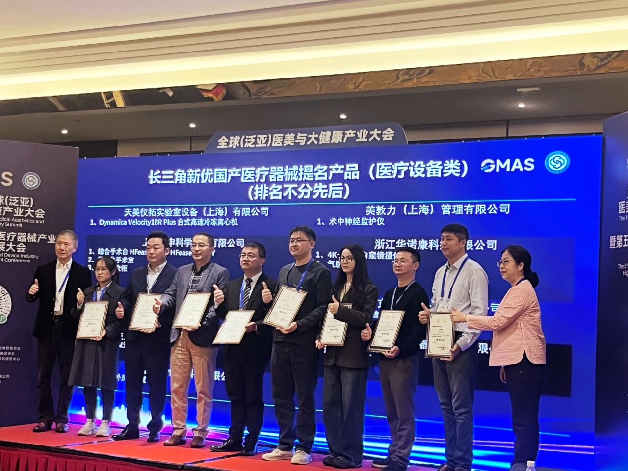 天美旗下Dynamica Velocity18R Plus臺式高速冷凍離心機從眾多國產設備中脫穎而出,榮獲“2025年度長三角優秀國產醫療設備耗材遴選”醫療設備類提名產品。