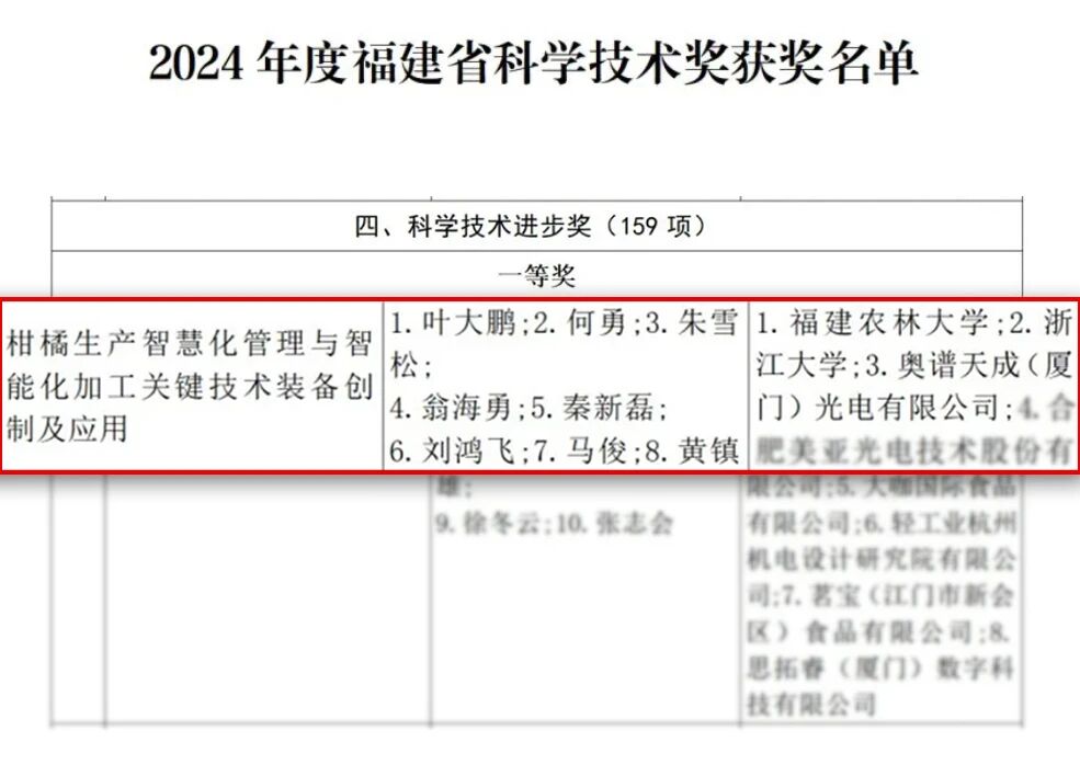 近日,奧譜天成憑借《基于高光譜多譜融合技術(shù)的柑橘生長全周期與品質(zhì)檢測系統(tǒng)》榮獲福建省科技進(jìn)步一等獎(jiǎng)。該獎(jiǎng)項(xiàng)由福建省人民政府設(shè)立,是省內(nèi)最高級(jí)別的科技榮譽(yù)之一,重點(diǎn)表彰在技術(shù)創(chuàng)新、工程應(yīng)用及行業(yè)貢獻(xiàn)方面取得突出成果的單位。本次獲獎(jiǎng)不僅體現(xiàn)了該項(xiàng)目在關(guān)鍵技術(shù)上的創(chuàng)新突破,也標(biāo)志著奧譜天成在農(nóng)業(yè)智能檢測裝備領(lǐng)域的領(lǐng)先實(shí)力得到權(quán)威認(rèn)可。